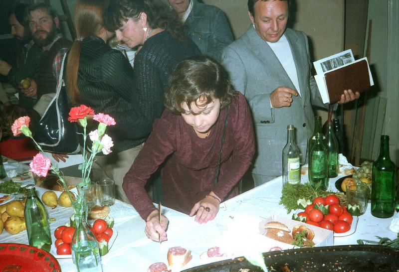 выставкой. Концерт квартета имени Бородина, ведущий Алексей Баталов. Венгерское посольство. 1995 г. Москва.